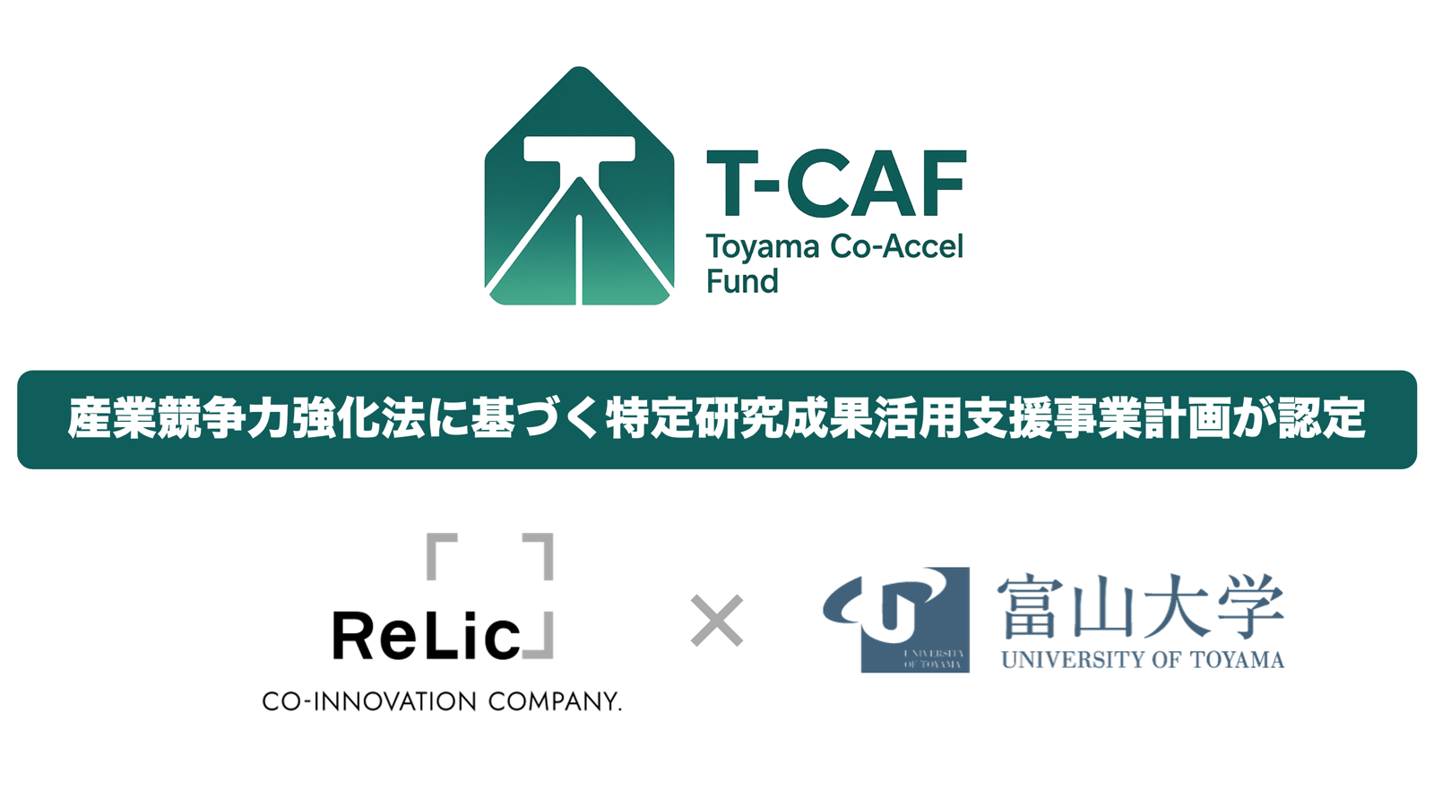 富山大学と連携して進める「Toyama Co-Accel Fund(T-CAF)」が大学発スタートアップ支援に関する国の認定を取得
