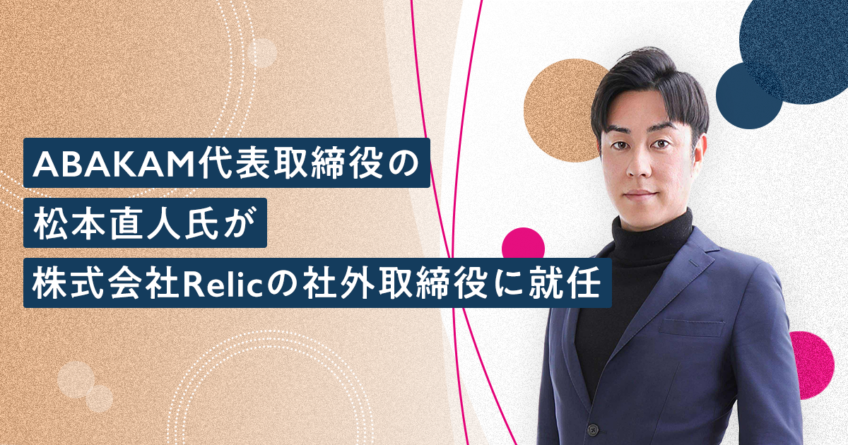ABAKAM代表取締役の松本 直人氏が、事業共創カンパニーRelicの社外取締役に就任