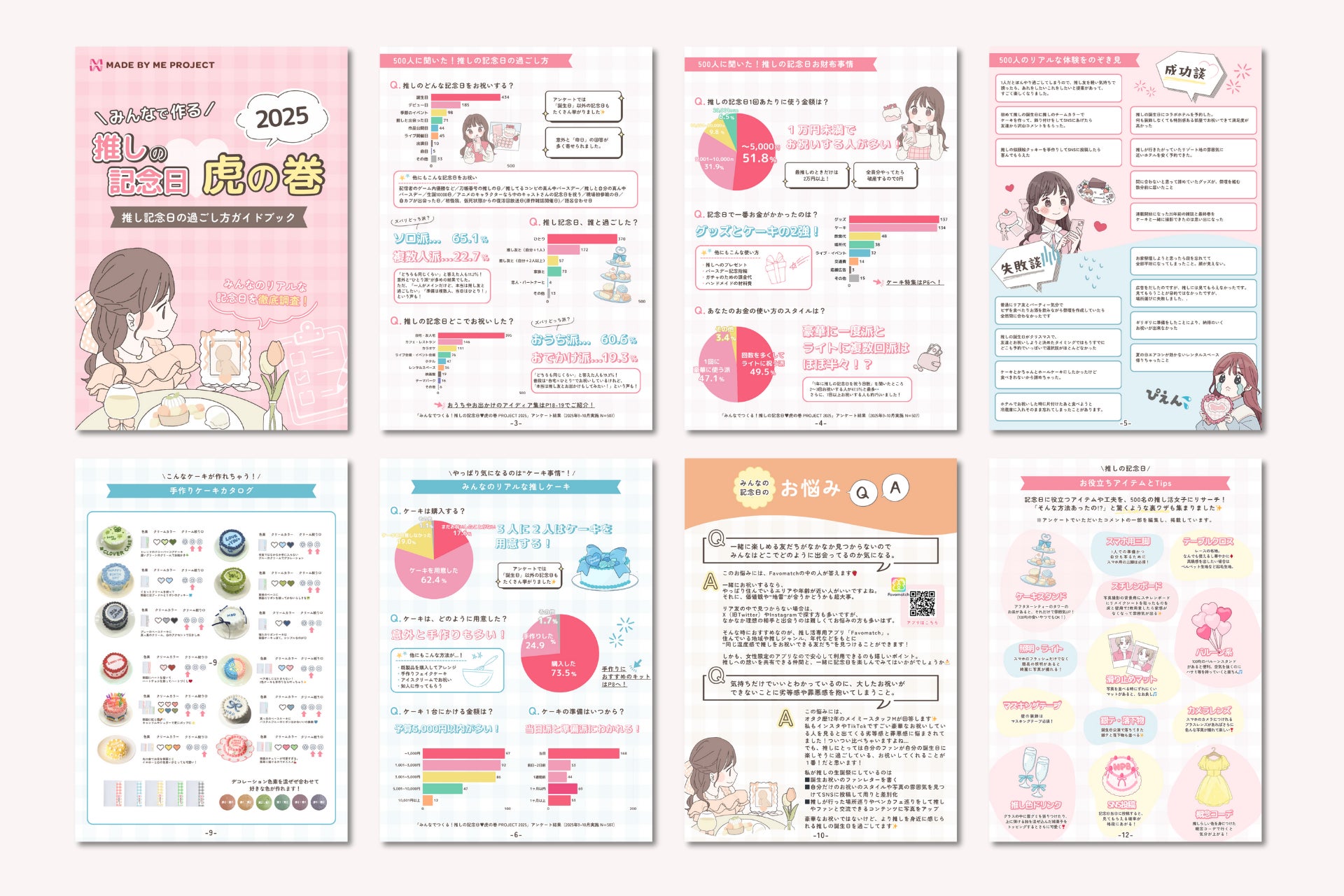 全20ページの推し活ガイドブックでは、アンケートデータに加え、ファンによる体験談や記念日の準備アイデアなどを掲載。“推しと過ごす記念日”の今を可視化し、「誰かを想う時間を手作りで祝う文化」を広げるきっかけを届けます。