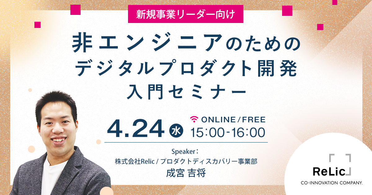 本イベントは非エンジニアである新規事業リーダーがデジタルプロダクト開発に取り組む際の必須スキルを身につけるためのウェビナーです。